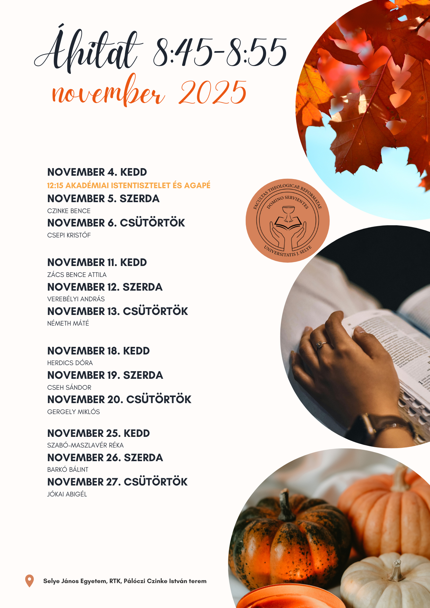 kedd, szerda, csütörtök 9.35-től a Pálóczi Czinke István teremben.