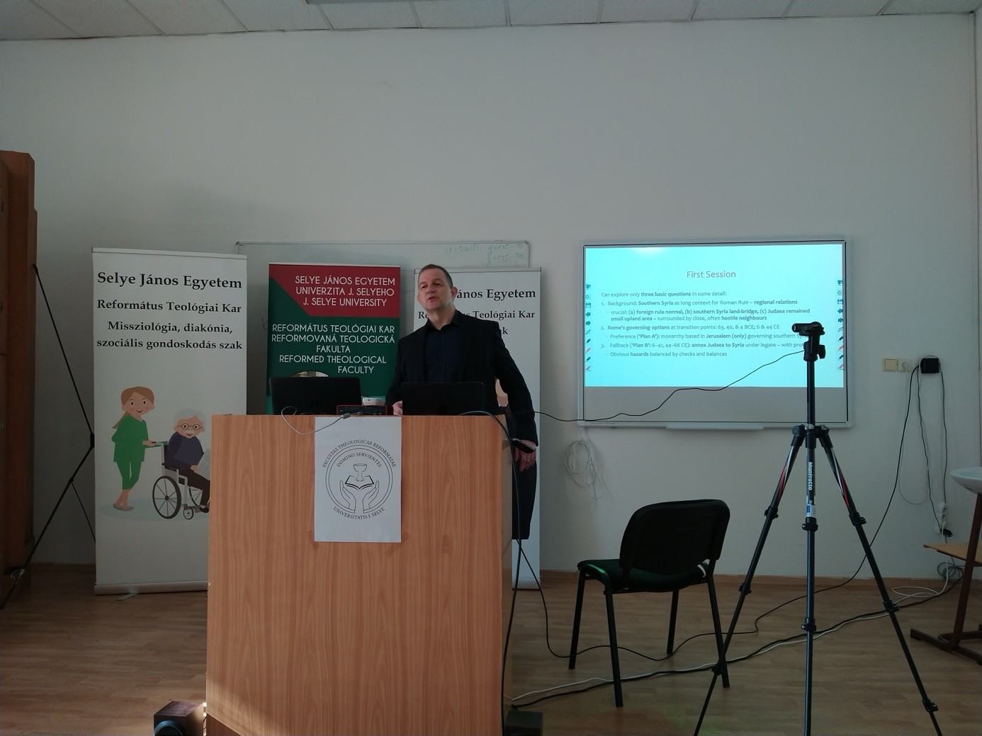 Mi egy ennél sokkal tradicionálisabb megoldás mellett döntöttünk, Josephus szemináriumot hirdettünk az Erasmus BIP program keretében. A szeminárium két részből áll. A 2025-ös tavaszi félév első felében két online alkalmon kell részt vennie a jelentkezőknek, majd egy két napos blokkszemináriumot tart nekünk Steve Mason Komáromban.