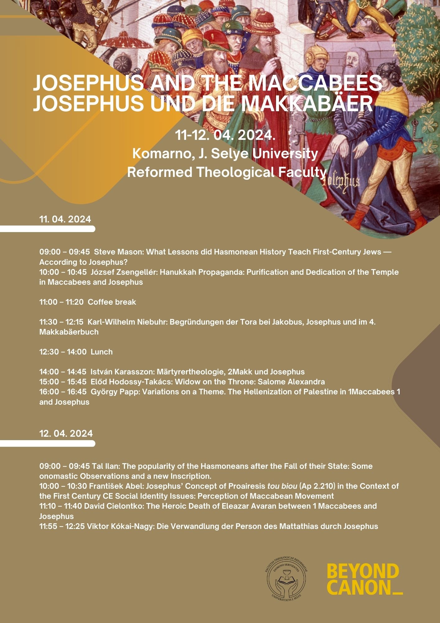 Tobias Nicklas, a Regensburgi Egyetem professzora felajánlotta, hogy segít megjelentetni a konferencia anyagát a Deuterocanonical and Cognate Literature Studies (DCLS) sorozatban. Kiváló lehetőség és egyben kihívás ez a Josephus Kutatóintézet és természetesen a Selye János Egyetem számára. Persze a csoda megvalósulásához még sok munkára lesz szükség, de jó reménységgel vagyunk a felől, hogy sikerül megjelentetni a kötetet.